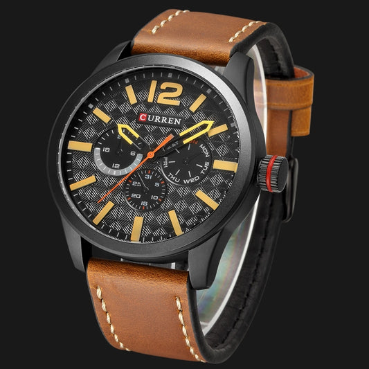 YSYH Luxury Men Multifunction Watch Leather Quartz Wistwatches With Gifts For Men