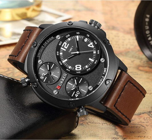 YSYH Casual Wristwatch Military Quartz Men's Watch Multiple Time Zone Leather Strap Male Clock