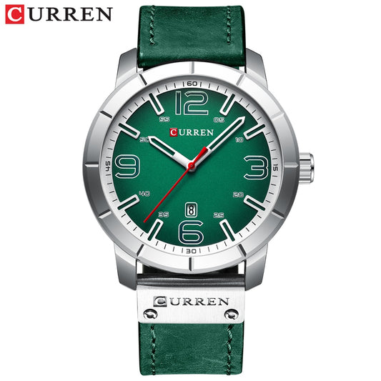 YSYH Dial Quartz Wristwatch Leather Strap Watch Display Date and Week Clock Green