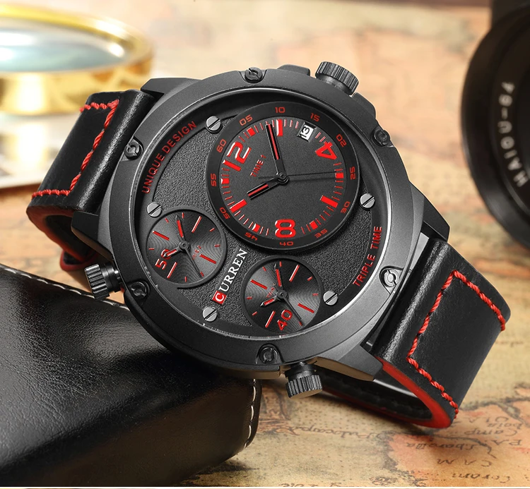 YSYH Casual Wristwatch Military Quartz Men's Watch Multiple Time Zone Leather Strap Male Clock