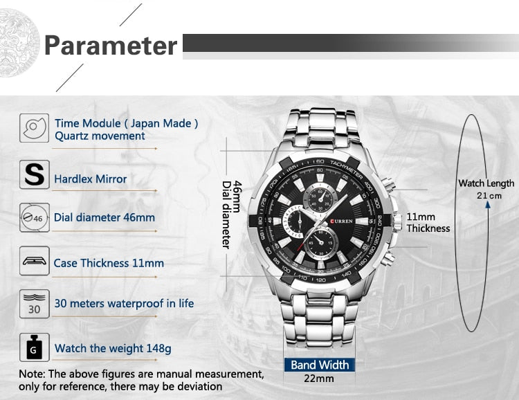 YSYH Men Watches Analog Sport Clock Full Steel Waterproof Wrist Watch For Men Male Clock